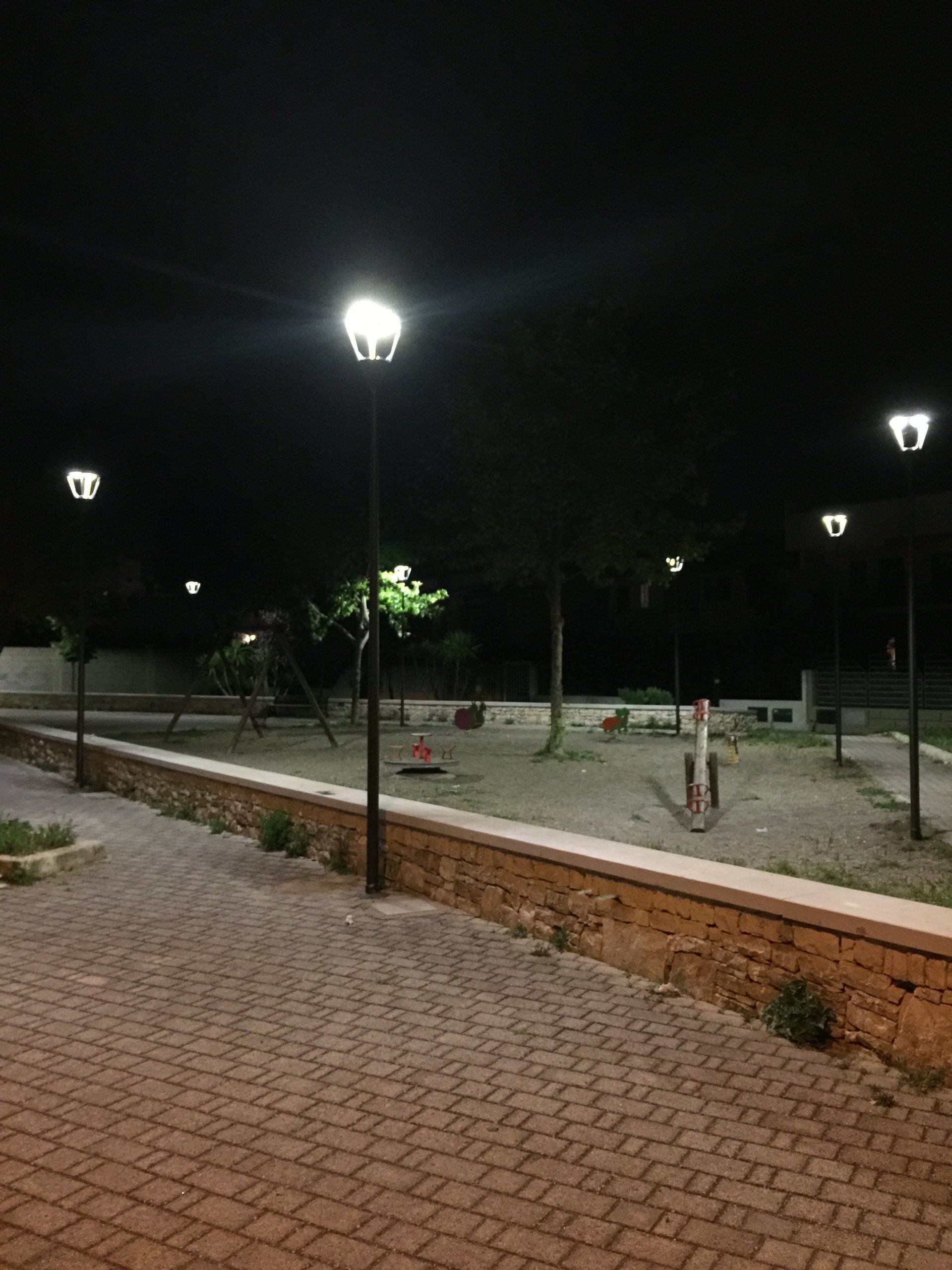 I lavori eseguiti hanno comportato la riqualificazione dell’impianto di illuminazione preesistente con sorgenti di nuova generazione al LED. La regolazione del flusso luminoso implementata di tipo punto-punto, attraverso una piattaforma integrata basata sulla tecnologia ad onde convogliate, garantisce il telecontrollo totale dell’impianto (SMART CITY)
